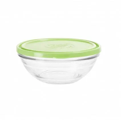 #Салатник FRESHBOX 925мл 17см круглый с зелёной крышкой