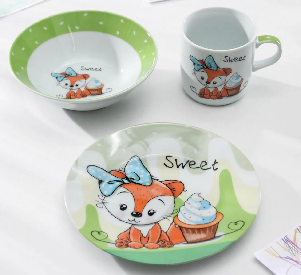 Набор детской посуды 3 предмета "Лисенок" кружка 250 мл, миска 400 мл, тарелка 18 см 3850487