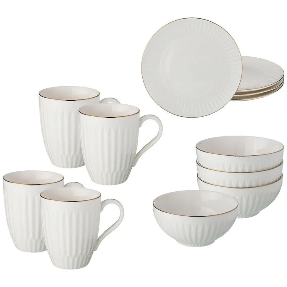 СТОЛОВЫЙ НАБОР НА 4 ПЕРСОНЫ "ВАЙТ", 12 ПР.: 4 ТАРЕЛКИ, 4 САЛАТНИКА, 4 КРУЖКИ 86-2262