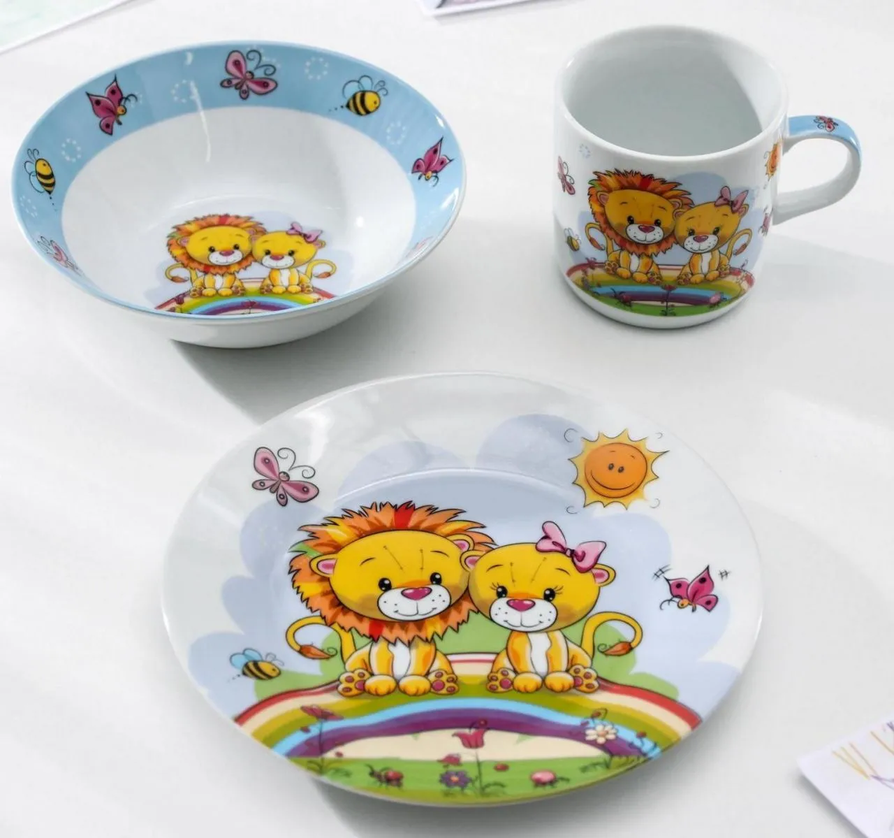 Набор детской посуды 3 предмета "Львята" кружка 250 мл, миска 400 мл, тарелка 18 см 4311498