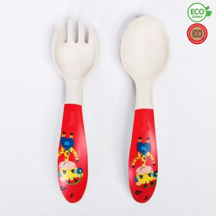 Набор приборов для кормления из бамбука, ложка и вилка, цвет розовый/красный 4591149