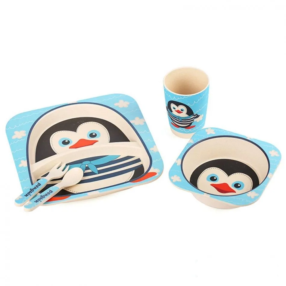 Набор бамбуковой посуды "Пингвинчик", тарелка, миска, стакан, приборы, 5 предметов 4591071