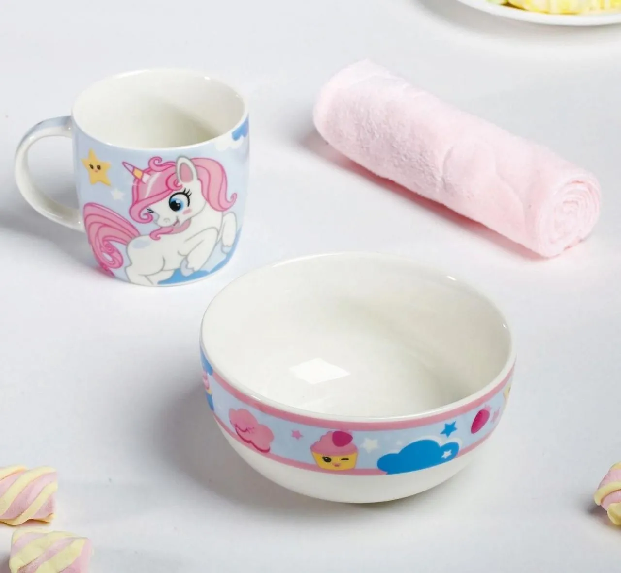 Набор "Сладкоежка", кружка 250 мл, тарелка глубокая 13 см, полотенце 30 х 30 см 4115669