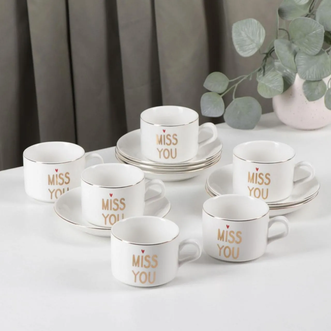 Сервиз чайный 12 пред "Скучаю" 6 чашек 150 мл, 7,5х6,5х5,5 мм, 6 блюдец 4105921