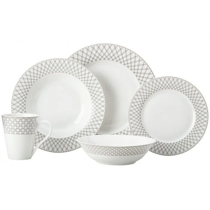 #Обеденный набор "Jewel" (чёрный) 20пр. на 4 персоны (4 тарелки 27см, 23см, 19см, 4 салатника 18см, 4 кружки 0.3л)