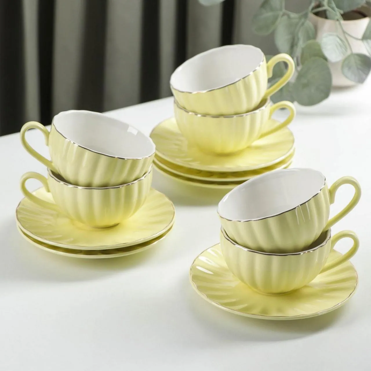 Чайный сервиз "Вивьен" 6 чашек 200 мл, 6 блюдец d-15 см, цвет желтый 4442311
