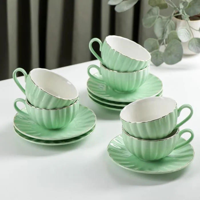Чайный сервиз "Вивьен" 6 чашек 200 мл, 6 блюдец d-15 см, цвет зеленый 4442313