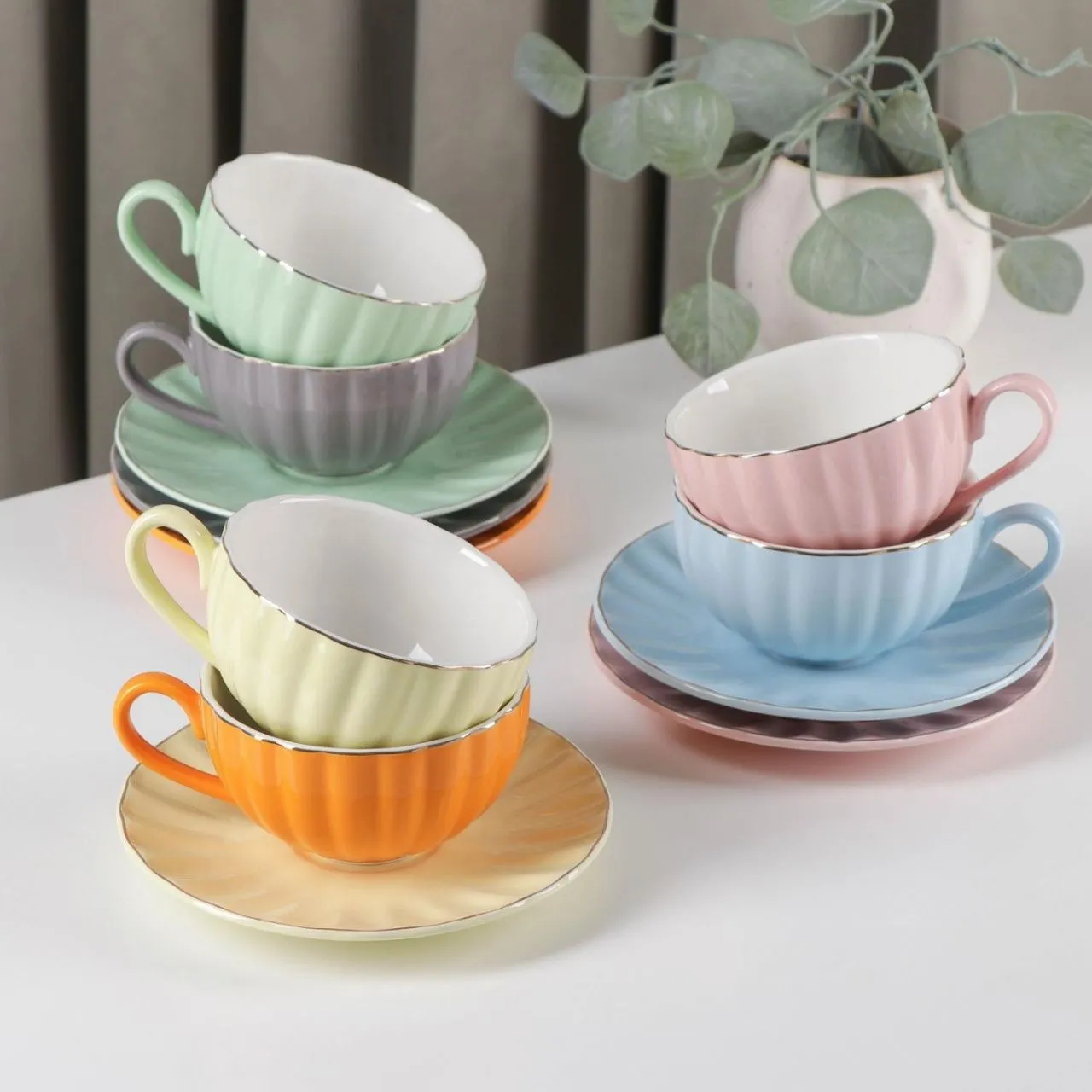 Чайный сервиз "Вивьен" 6 чашек 200 мл, 6 блюдец d-15 см, цвет МИКС 4442316