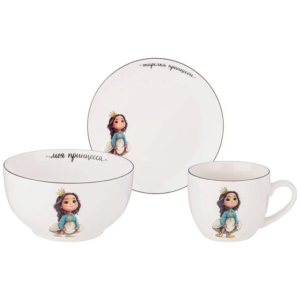 #НАБОР ПОСУДЫ LEFARD ПРИНЦЕССА, 3 ПР.: САЛАТНИК 470МЛ, ТАРЕЛКА 20СМ, КРУЖКА 220МЛ 260-683