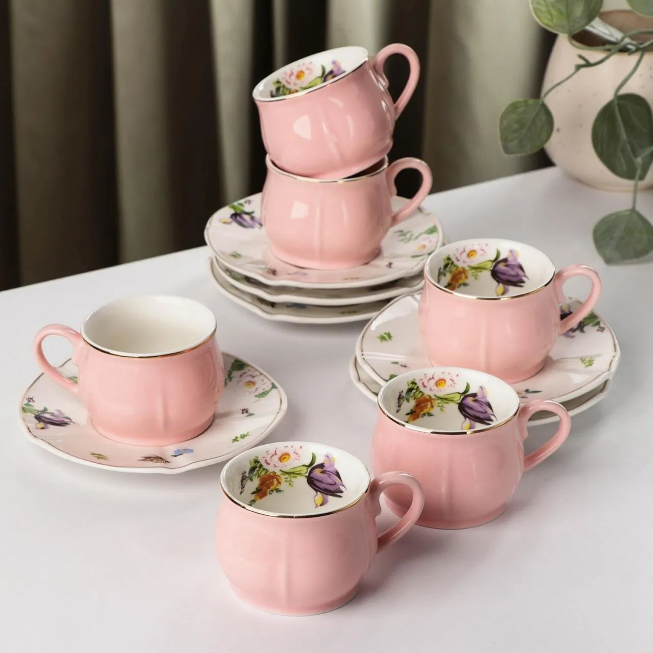 Сервиз кофейный 12 пред "Сирена" 6 чашка 8х6,5х5 см, 100 мл, 6 блюдец 12 см, цвет голубой 4624679