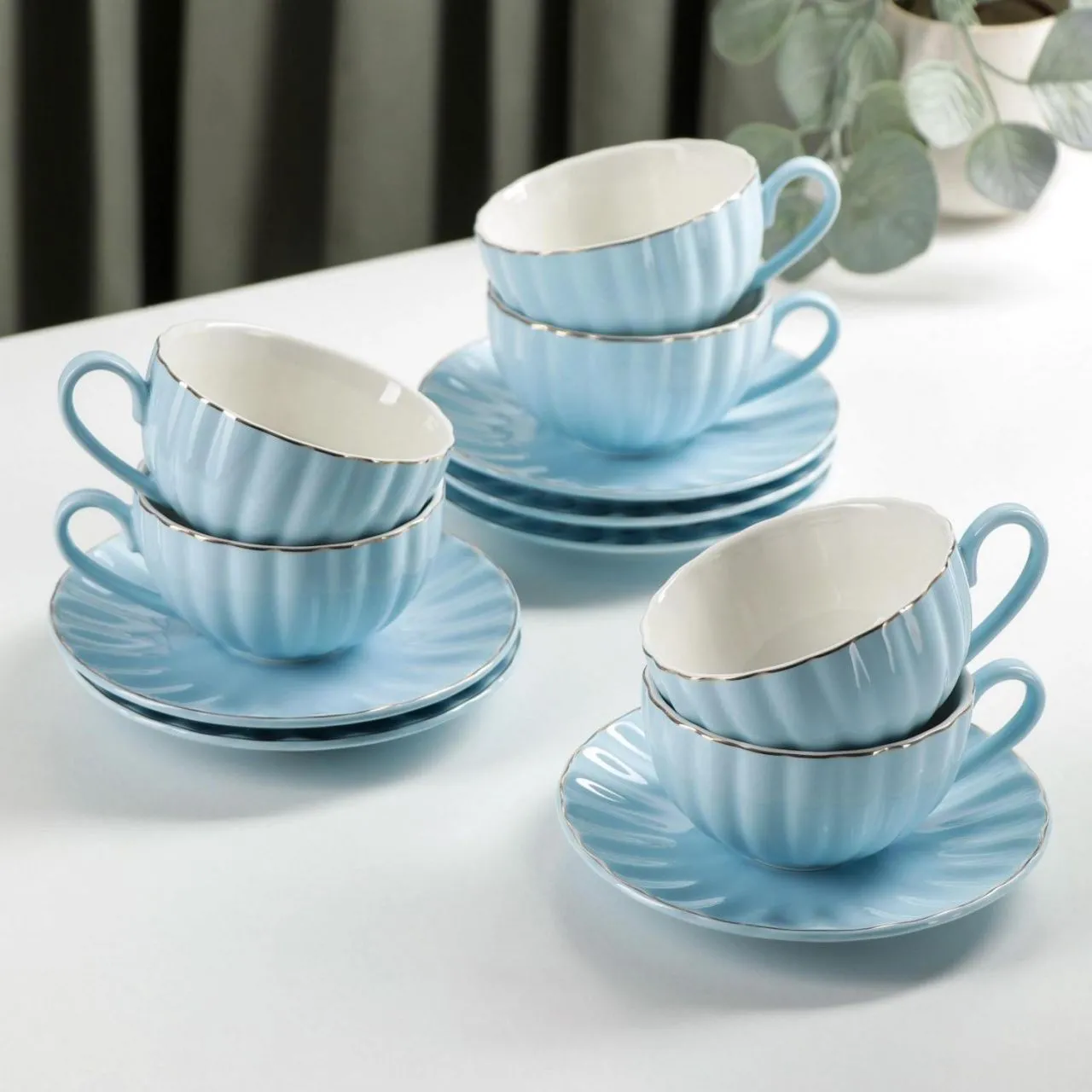 #Чайный сервиз "Вивьен" 6 чашек 200 мл, 6 блюдец d-15 см, цвет голубой 4442312