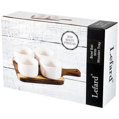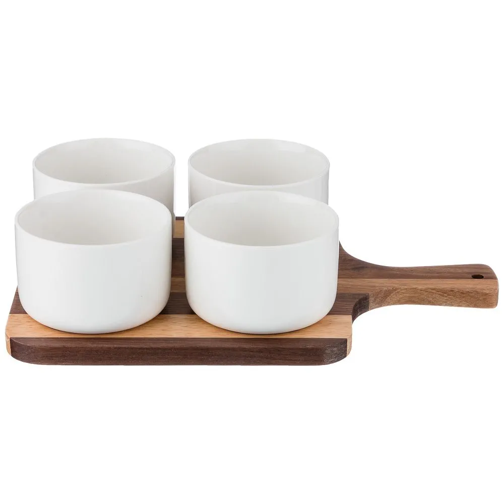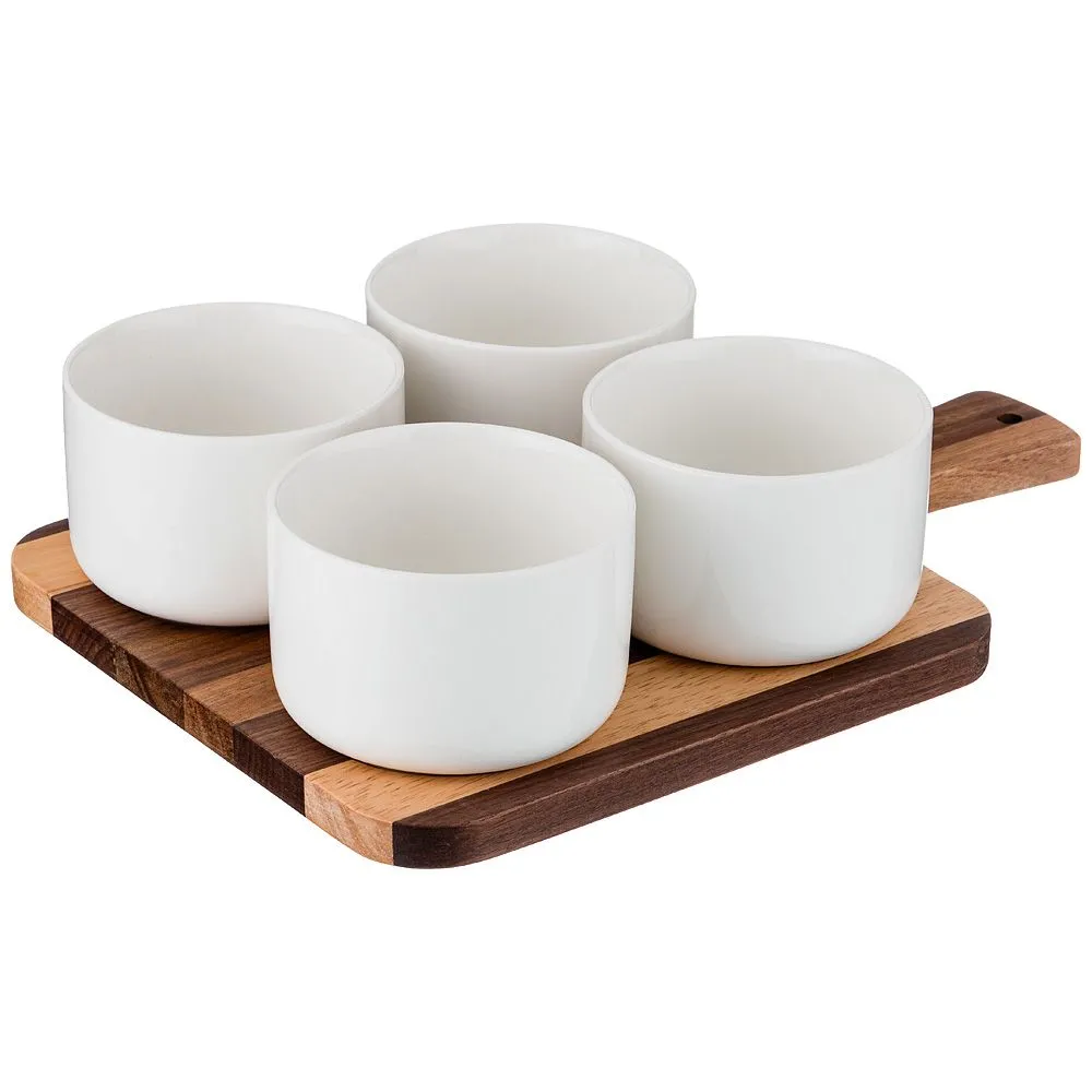 НАБОР СОУСНИКОВ ИЗ 4 ШТ. 8,5*8,5*6 220 МЛ. НА ДЕРЕВЯННОЙ ПОДСТАВКЕ (КОР=8НАБОР.)