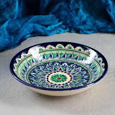 Тарелка синяя с золотой окантовкой в скандинавском стиле, маленькая десертная, диаметр 15,2 см BO02
