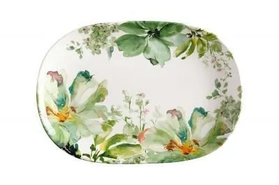 БЛЮДО ДЛЯ СЕРВИРОВКИ С ДЕРЕВЯННЫМИ РУЧКАМИ НА ПОДСТАВКЕ КОЛЛЕКЦИЯ "ЗОЛОТОЙ МРАМОР" ЦВЕТ: GRAY 32,5*13*5