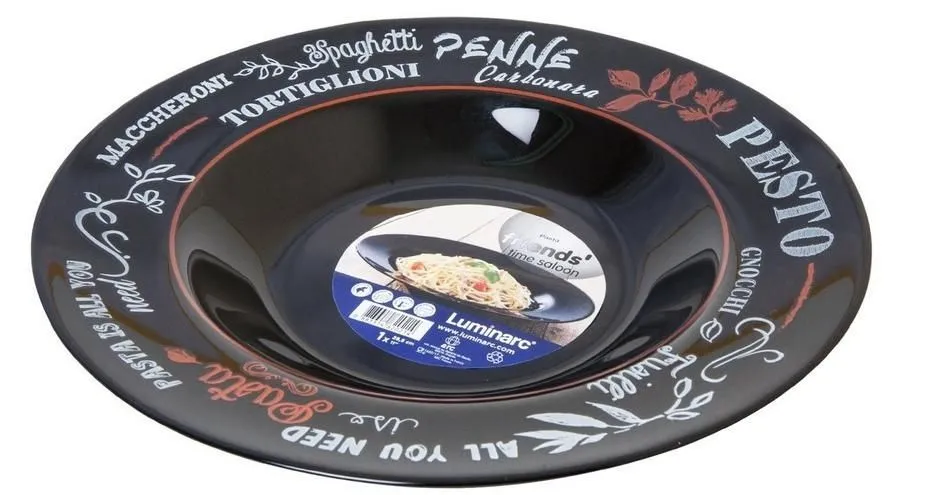 #Тарелка для пасты ФРЕНДС ТАЙМ БЛЭК декорированная