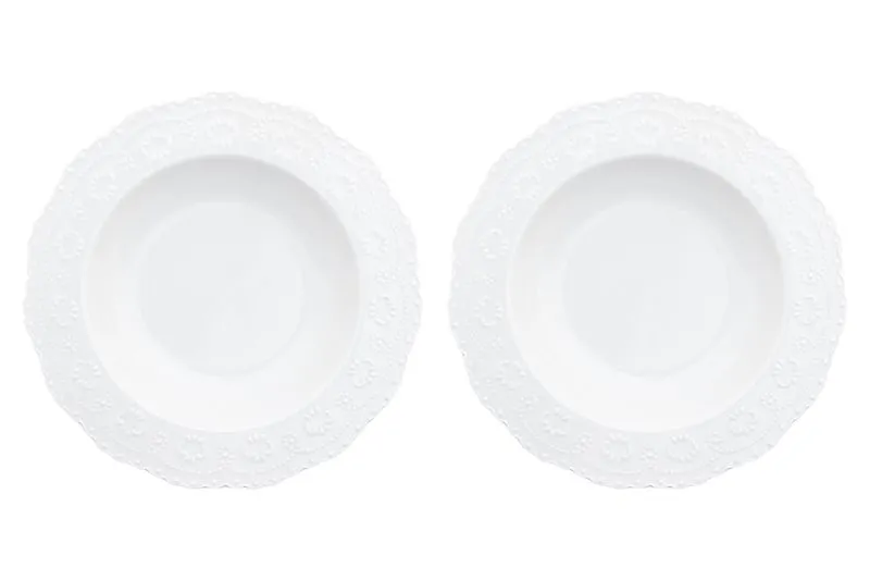 #Набор круглых суповых тарелок с ажурными краями "Белый узор" 2 предмета, 22*22*4 см 400 мл - каждая