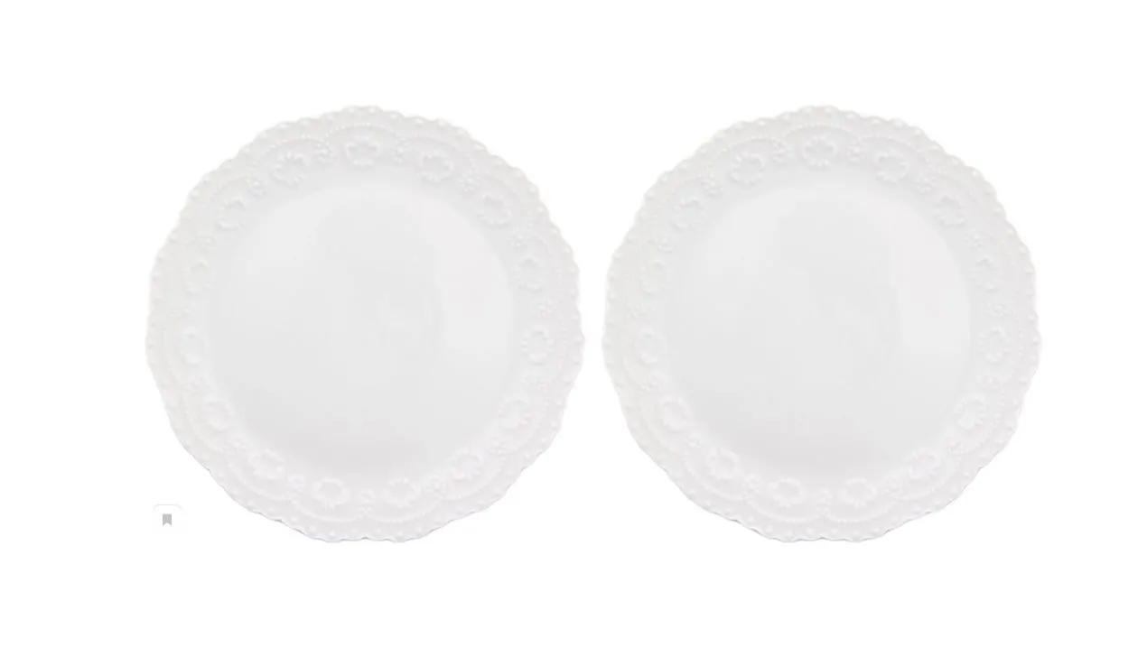 #Набор круглых тарелок для закуски с ажурными краями - 2 предмета, "Белый узор" 20,5*20,5*1,8 см - каждая