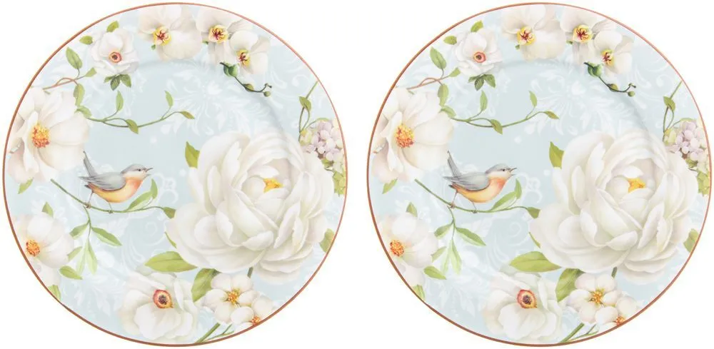 Набор круглых тарелок 2 предмета "Дикая роза на белом" 26*26*2 см - каждая, NEW BONE CHINA