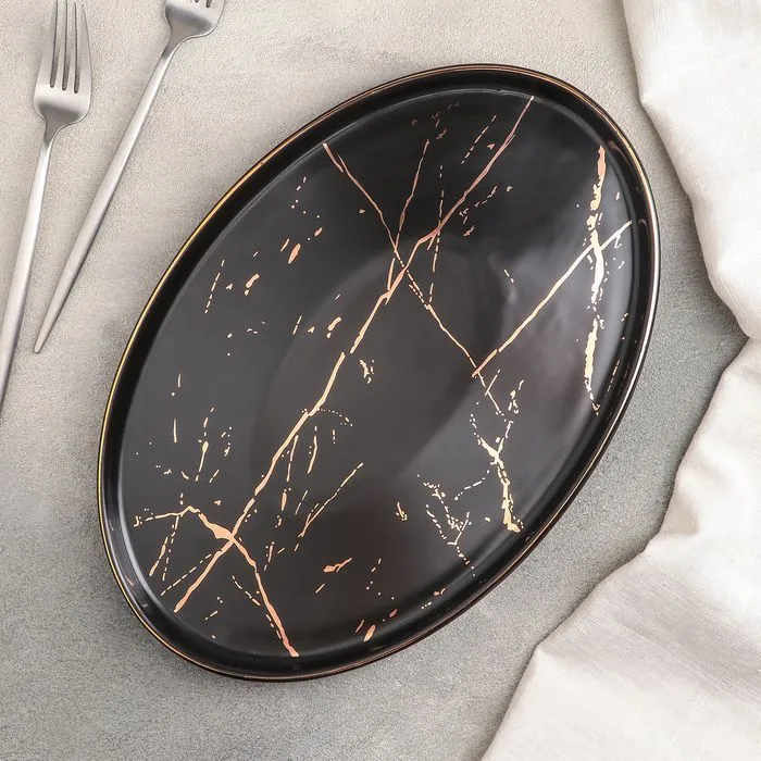 Тарелка для подачи овал "Gold" 31х21х2 см, цвет черный с золотом 4711423
