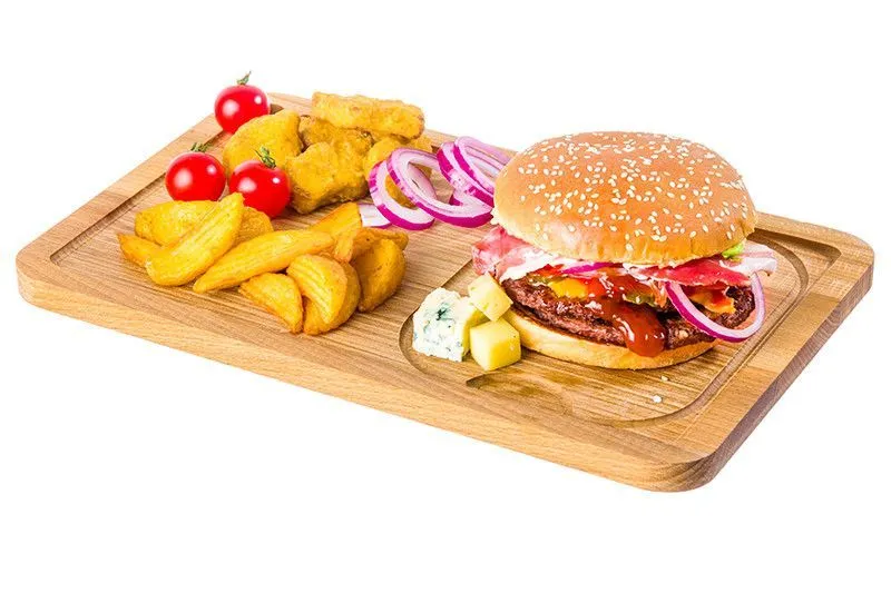 Доска-блюдо для подачи 35*22*1,7 см, с углублениями для сервировки, с отверстием для подвешивания, состав - бук