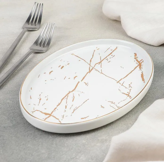 Тарелка для подачи овал"Gold" 27х18,5х2 см, цвет белый с золотом 4711420