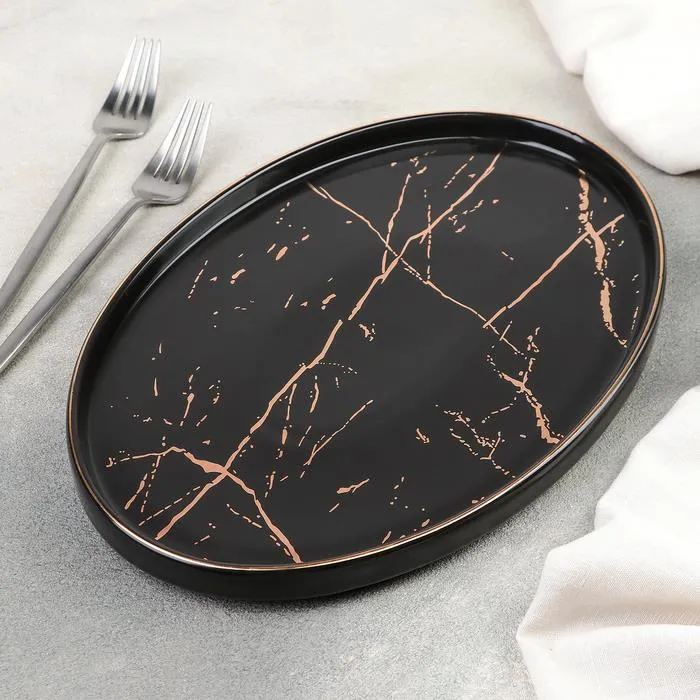 Тарелка для подачи овал"Gold" 27х18,5х2 см, цвет черный с золотом 4711421