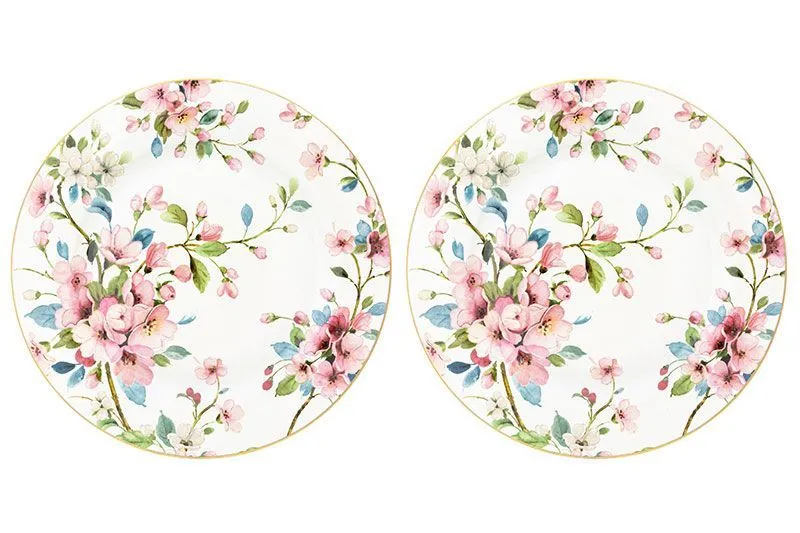 Набор круглых тарелок 2 предмета "Яблоневый цвет на белом" 26*26*2 см - каждая, NEW BONE CHINA