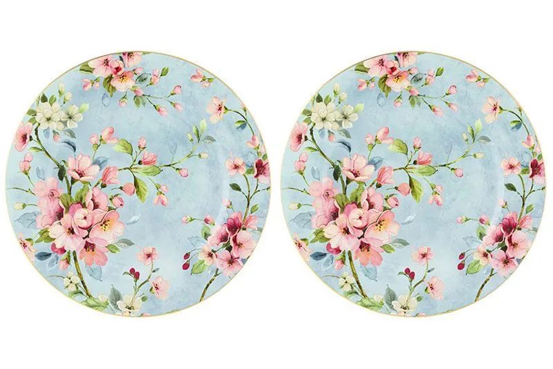 #Набор круглых тарелок 2 предмета "Яблоневый цвет на голубом", 26*26*2 см - каждая, NEW BONE CHINA