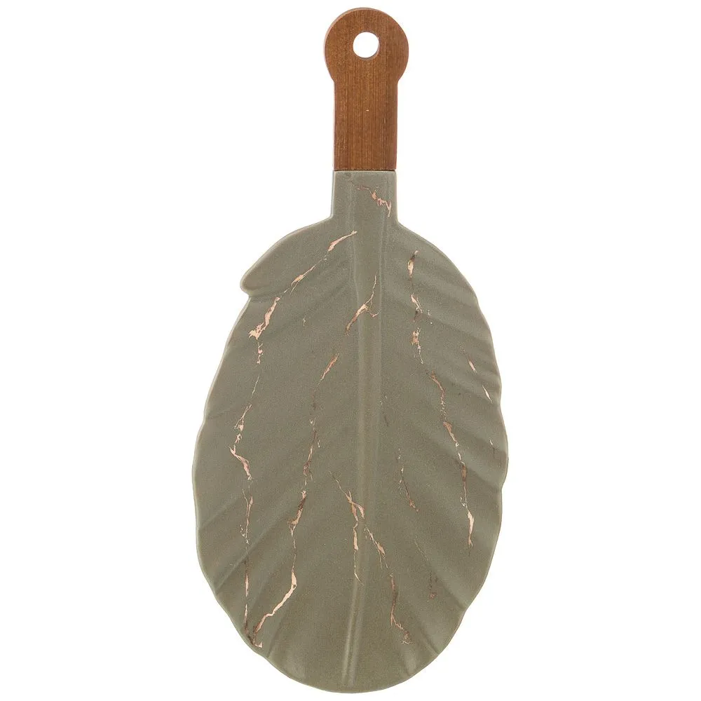 БЛЮДО ДЛЯ СЕРВИРОВКИ С ДЕРЕВЯННОЙ РУЧКОЙ КОЛЛЕКЦИЯ "ЗОЛОТОЙ МРАМОР" ЦВЕТ: GRAY 39,5*17,8*2,5 СМ 412-130