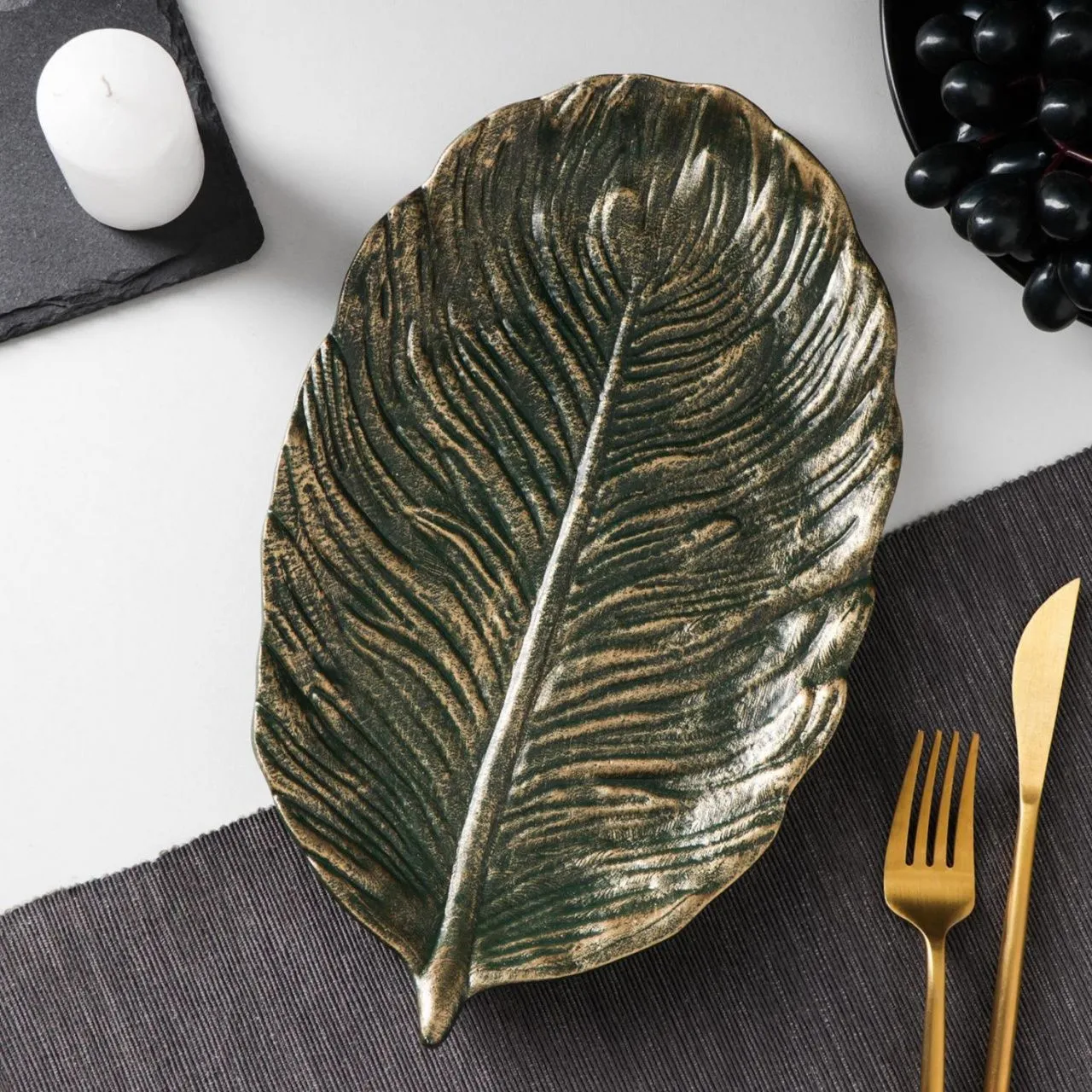 Блюдо для фруктов "Лист" 30х18х2 см, оттенок бронзовый 5800997