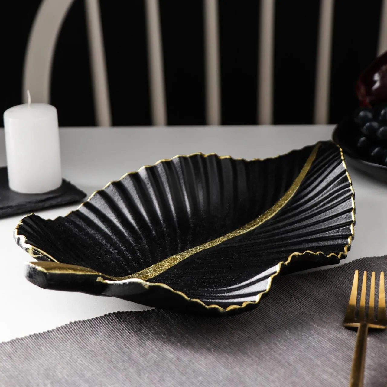 Блюдо для фруктов "Лист" 35,5х20х5 см, цвет золотой с черным 5801007