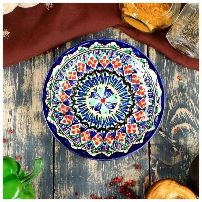 #Тарелка Риштанская Керамика "Цветы", синяя, плоская, 15 см 2870518