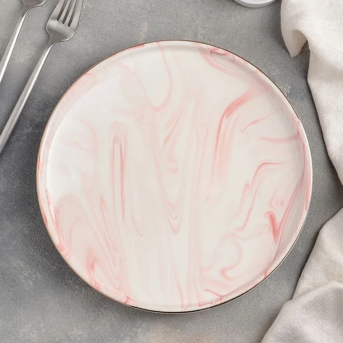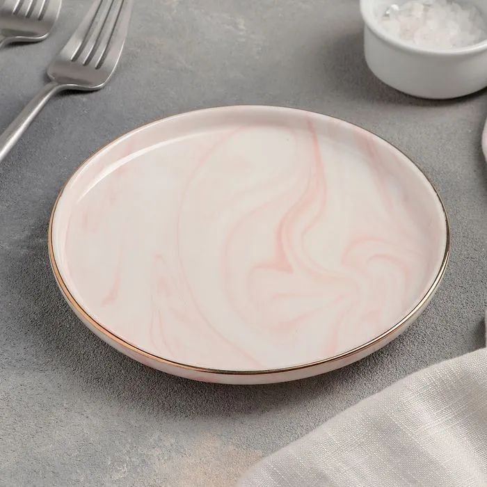 Тарелка пирожковая "Мрамор" 15х2 см, цвет розовый 4486550