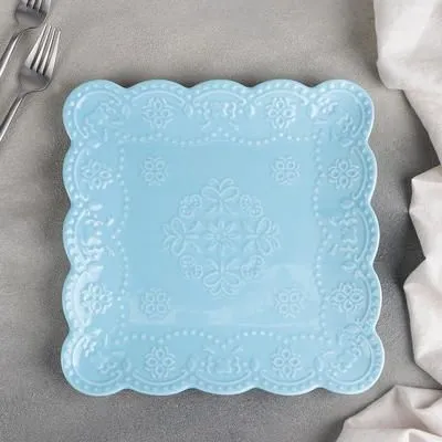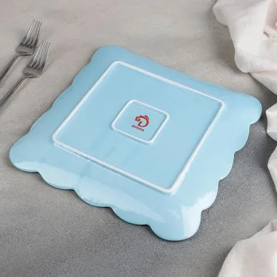 #Тарелка квадратная "Сьюзен" 26,5х26,5 см, цвет голубой 4521292