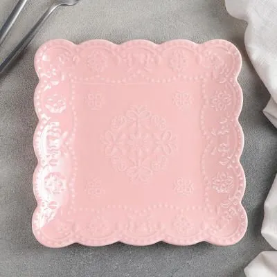 Тарелка квадратная "Сьюзен" 20х20 см, цвет розовый 4521290