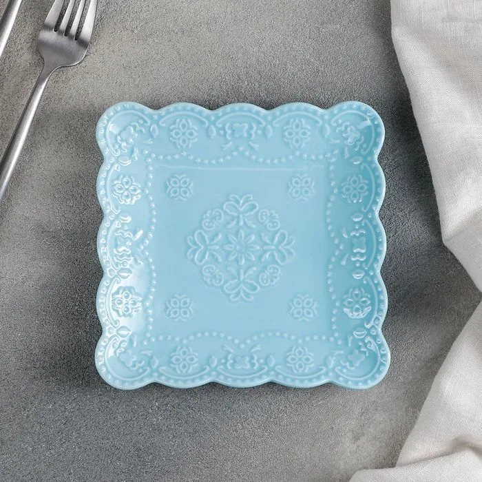 Тарелка квадратная "Сьюзен" 15х15 см, цвет голубой 4521288