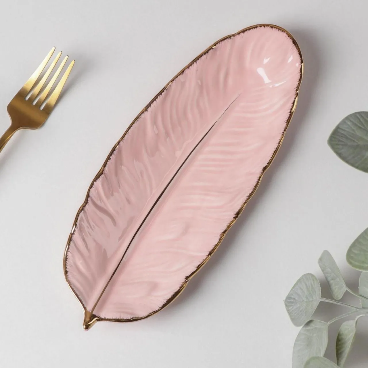 Блюдо сервировочное "Рапсодия. Лист" 25х10х2 см, цвет розовый 6951365