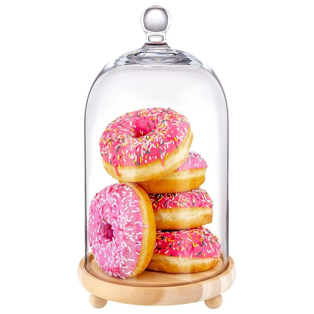 Блюдо для сервировки "Кристалл" 15,5*15,5*28 см бамбук со стеклянной крышкой, размер блюда 15,5*15,5*3,5 см, размер стеклянной крышки 14*14*25 см