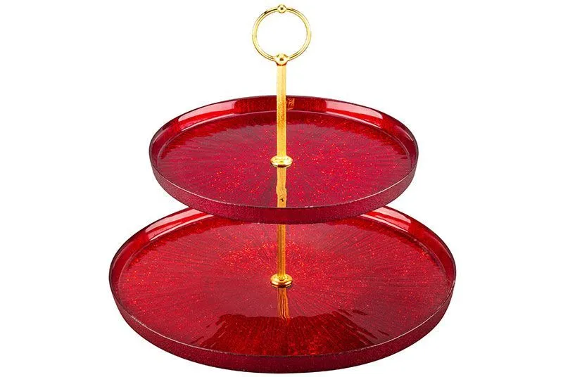 Блюдо - этажерка 2-х ярусная "Гранатовое сечение" 28*28*24 см, с бортиком, размер блюд 21*21*1,8 см и 28*28*2 см, расстояние между ярусами 10 см, пище