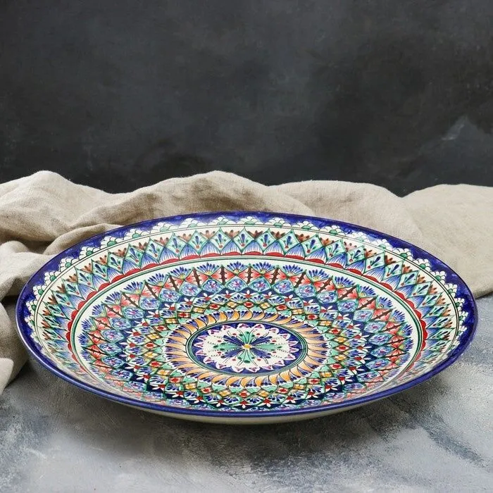 #Ляган круглый Риштанская Керамика, 41см, сине-красный, мелкий орнамент 1924223