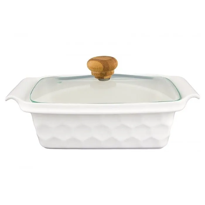 Блюдо для запекания и сервировки "Соты" 25,5*14,5*11,5 см, 1,1 л, прямоугольное, с ручками, со стеклянной крышкой с деревянной ручкой, внутренний разм