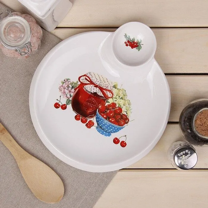 Блюдо круглое с соусником "Вишневое варенье" 22,5х20х2 см 2532215