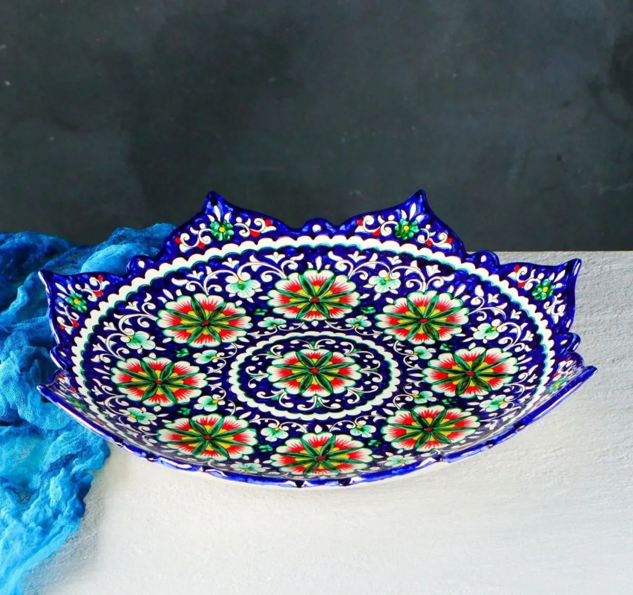 Ляган Риштанская Керамика "Цветы", 41 см, рифлёный, синий 1924249