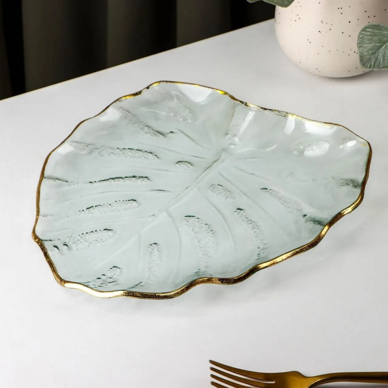 #Блюдо сервировочное "Лист" 20,5х22 см, цвет прозрачный с золотой каймой 7707513