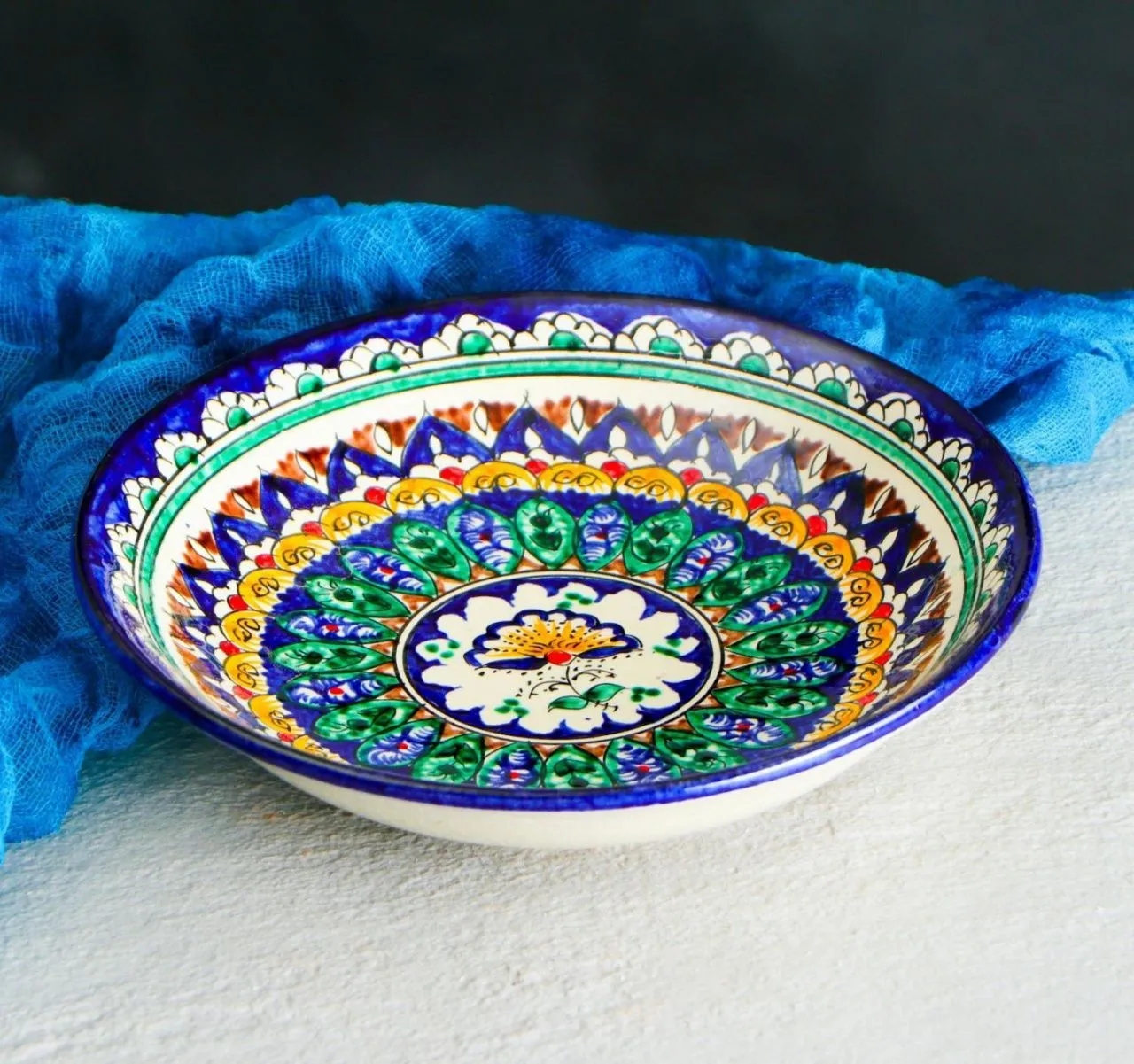 #Тарелка Риштанская Керамика "Узоры", синяя, глубокая, микс, 20 см 2741458