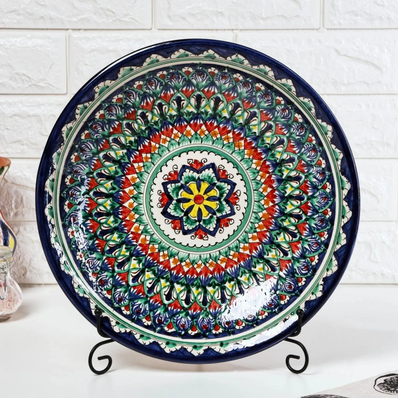 #Ляган Риштанская Керамика "Узоры", 33 см, глубокий, синий 9591725