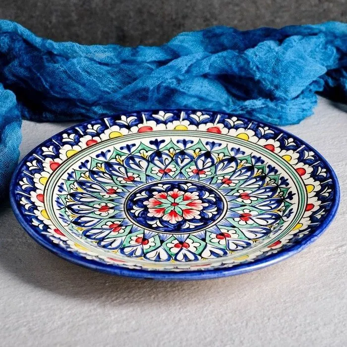 Тарелка Риштанская Керамика "Цветы", 22 см, синяя микс 2410841