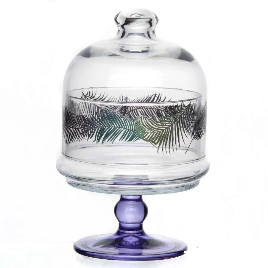 Блюдо из прозрачного стекла с рисунком, на ножке син цвета 12*19 см