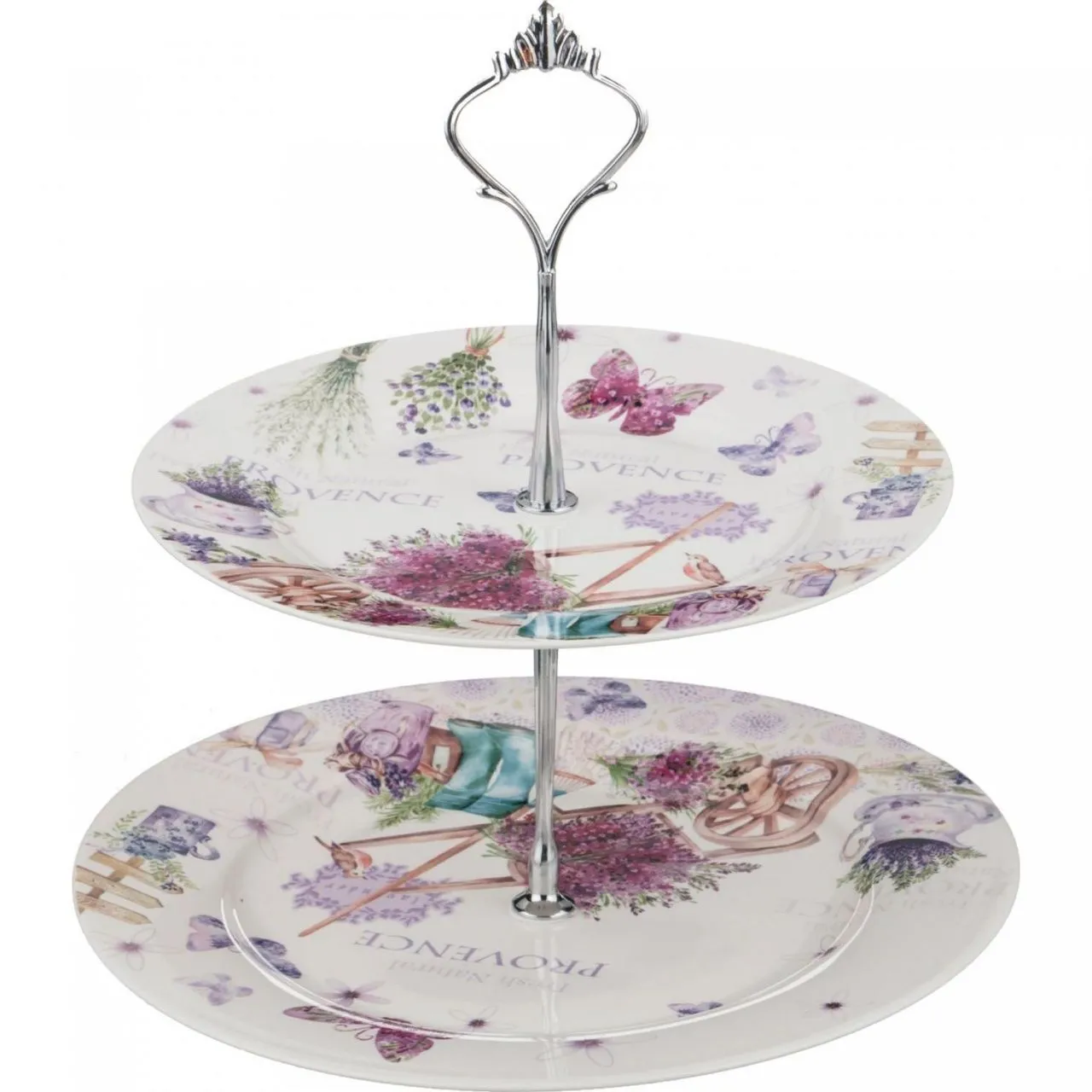 ЭТАЖЕРКА 2-Х ЯРУСНАЯ "ЛАВАНДОВАЯ ВЕСНА" ДИАМЕТР=23/19 СМ. ВЫСОТА=23 СМ.
