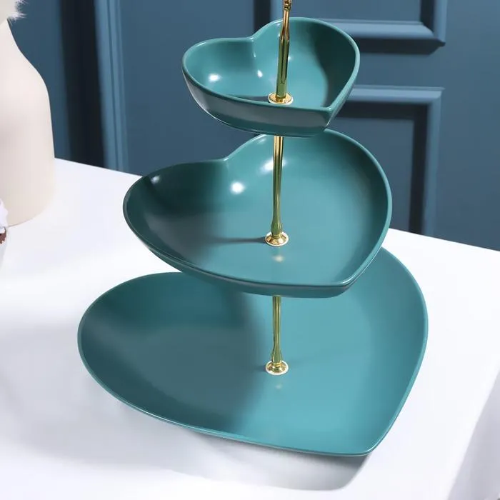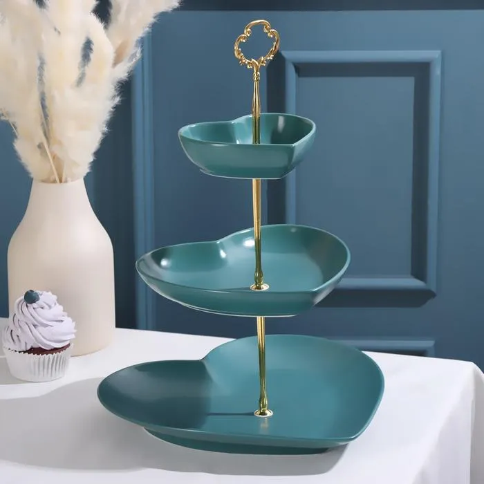 Блюдо 3 яруса "Сердца" 12х11/19х28/26х26см, цвет зеленый 5752441